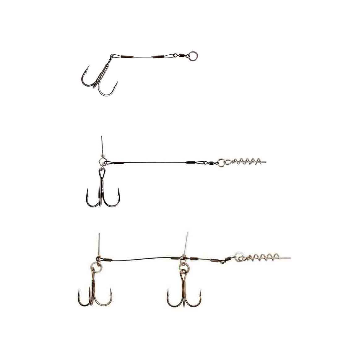 Tillverkad av nylonöverdragen 7-trådig rostfri wire och är försett med sylvassa 3-krokar. Finns i en rad olika storlekar, så att dom passar perfekt till den jiggen du tänte använda.