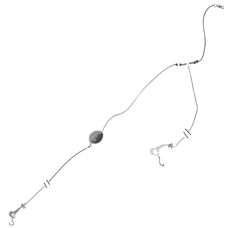 Innovativa och grymt effektiva färdiga tackel för plattfiskmete med en släptafs och en tafs på bom. Miljövänligt sänke, spinnerblades och attraktorer.