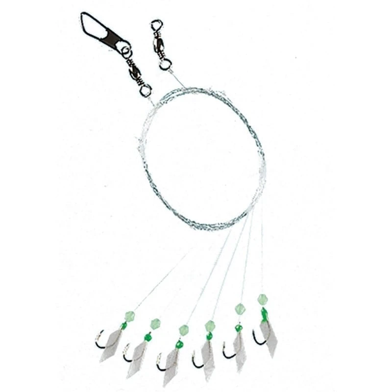En het häckla med 6 stycken enkelkrokar i storlek 12. Perfekt till sill / strömming och tobis.