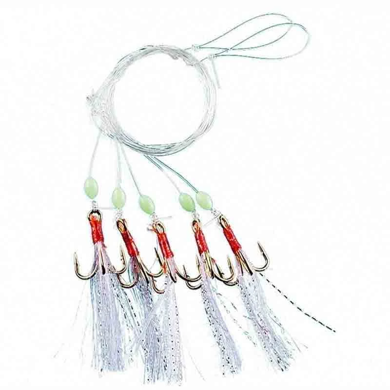 En klassisk häckla med 5 stycken trekrokar. Krokarna är guldfärgade och har vit tinsel som flashar fint i vattnet.