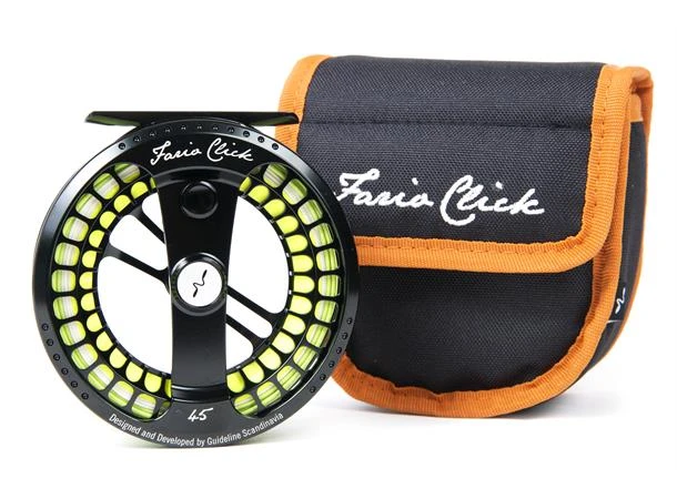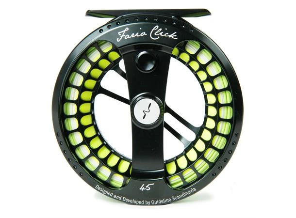 Guideline Fario Click är en ny medlem i Fario-familjen med en mjuk och smidig klickbroms samt hel ram för att förhindra att tunna linor kommer i kläm mellan spole och gavel. Jämfört med andra märken har vår modell ett justerbart klicksystem med dubbla stift, så att du kan ställa in motståndet i tre olika nivåer. Och eftersom klickstiften har olika diametrar får du också ett lättare motstånd när du vevar in lina, och ett lite hårdare ´broms´ när en fisk rusar mot horisonten. Men för att var ärlig så är det ingen egentlig broms på denna denna typ av flugrulle, klick-systemet handlar mer om att undvika övervarvning av spolen. För det lättaste fisket kommer de här rullarna att matcha våra nya LPX Tactical och LPX Nymph-spön perfekt.