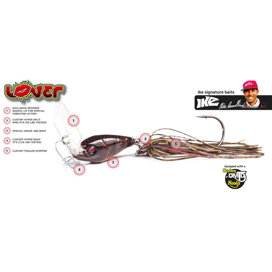 Molix Lover Special Vibration Jig är ett blade bete som är designat av bassproffset Mike Iaconelli. Blade jiggen ser lite annorlunda ut än många andra Blde jigs på marknaden. Själva huvudet är tjockare och trycker mycket vatten samtidigt som den mjuka gummikjolen vibrerar läckert. Glöm inte att ”hotta” upp din Molix Lover Special Vibration Jig med en trailer-jigg för extra attraktion!