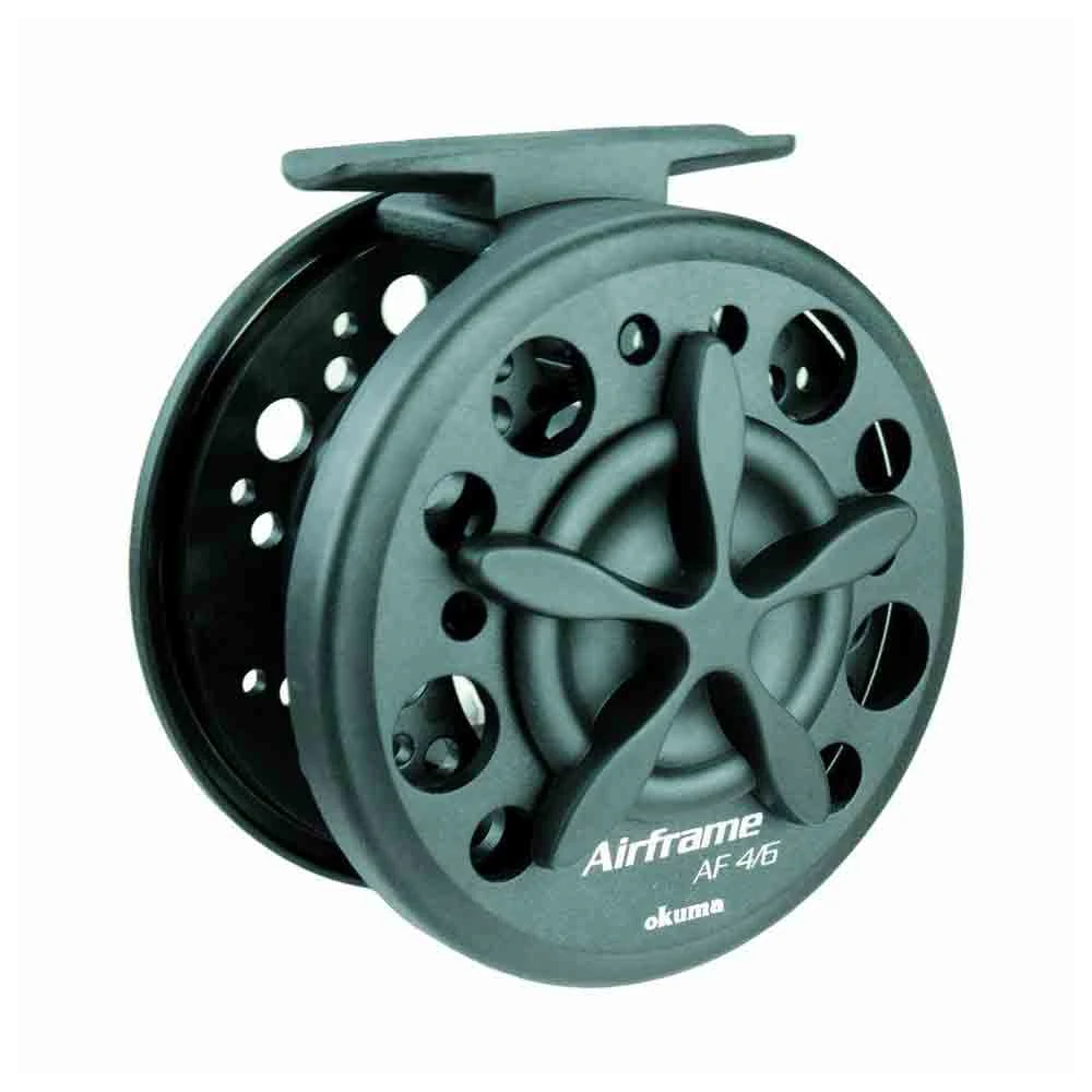 Okuma Airframe är en klassisk flugfiskerulle i grafit. En otroligt populär rulle till kustfisket efter havsöring, då man oftast inte behöver bry sig om det kommer in grus och saltvatten i rullen.