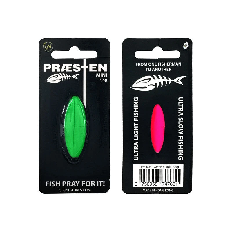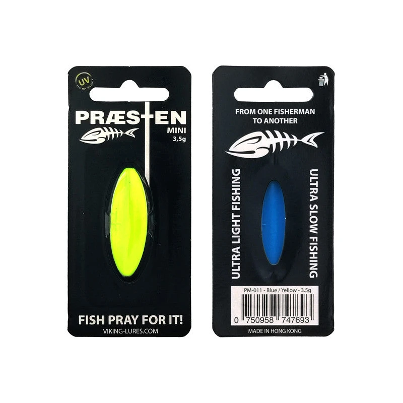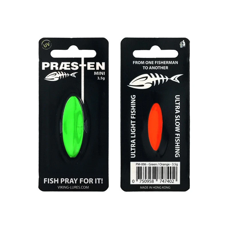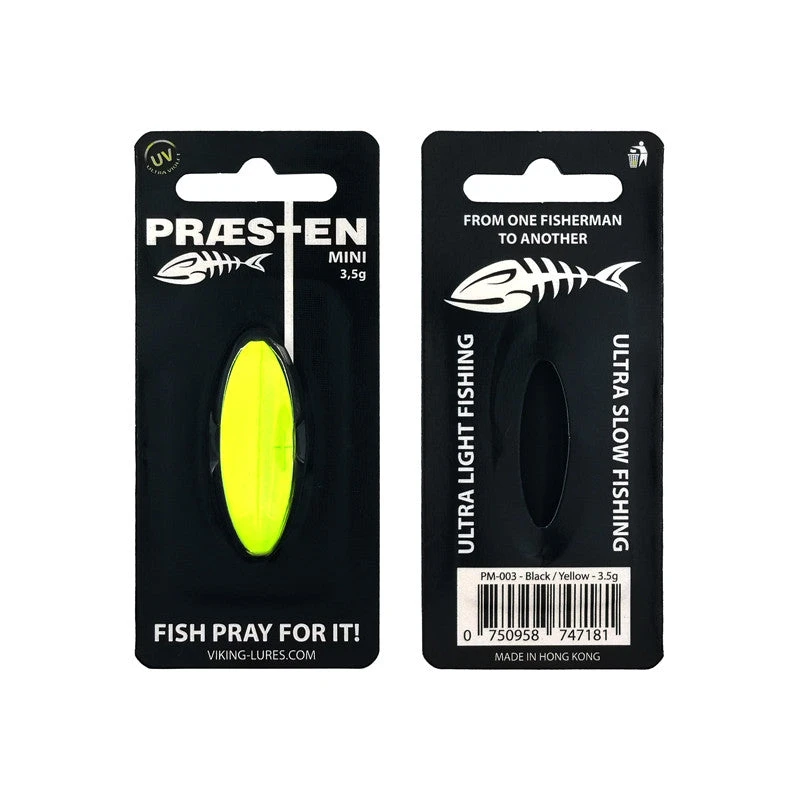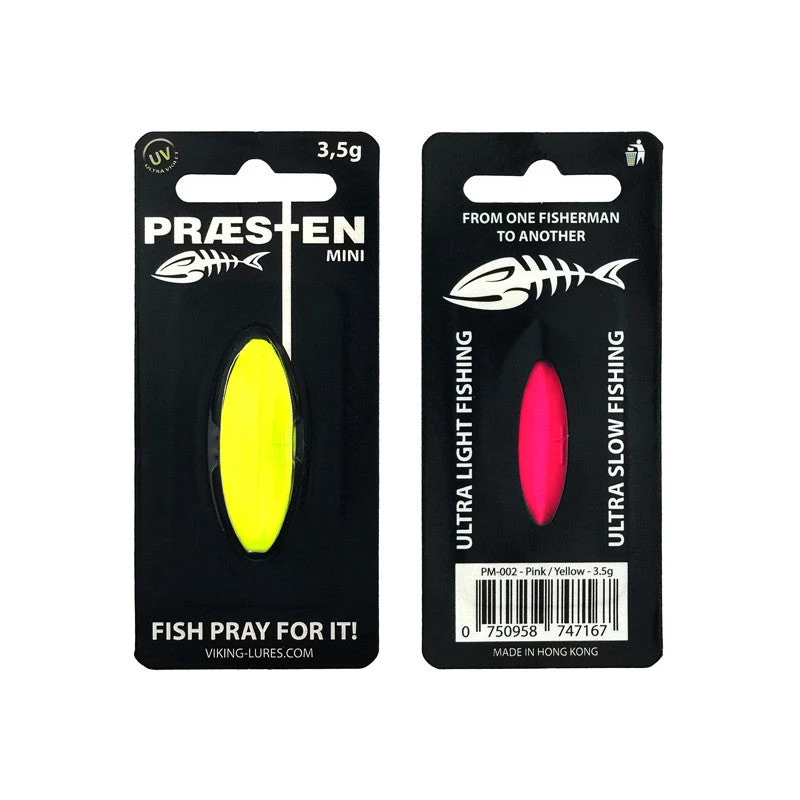 Prästen Mini är ett riktigt bra bete till det framförallt regnbågsfisket i dammar och sjöar. Draget är riktigt platt och får en härligt vaggande gång och syns väldigt mycket i vattnet. Prästen Mini är ett väldigt lätt drag och kan därmed fiskas riktigt långsamt, men är även riktigt bra bakom en lätt bombarda.