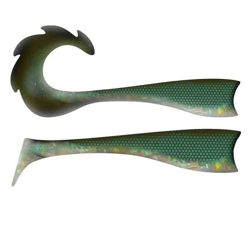I paketet ingår det 2 kroppar (en med paddel och en curly-tail) samt en jiggsakalle som väger 290 gram med en super stark och vass krok. Jiggskallen är designad för att lätt sätta fast en stinger tafs om så önskas.